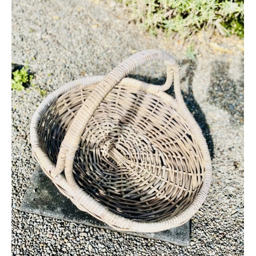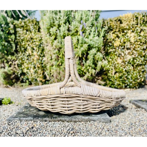 Quality handmade large grey rattan Flat Flower Basket. Environmentally friendly and long lasting.