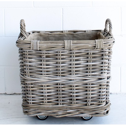 Lined Square Log Basket on Castors - Large Large Lined Square Log Basket on Castors - Last One Available Medium: 52(W) x 41(H) - 47cm(H) inclu.. Product #: PT-Castors Log Regular price: $250.00 $250.00