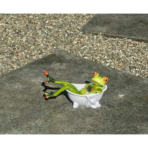Add some fun to your collection with this ceramic quirky frog in bath! Measuring 10.5cm x 15.5cm, this playful piece is perfect for collectors or anyone looking to add a bit of whimsy to their space.