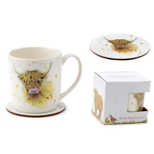 Jan Pashley Highland Cow Porcelain Mug & Coaster Set