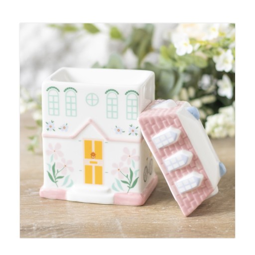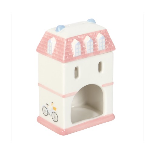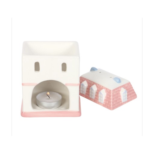 Ceramic House Shapped Oil Burner & Wax Warmer. With pastel pink hues it can be displayed as a pretty ornamental feature whilst also doubling as a fragrance burner to fill the home with fresh welcoming scents.